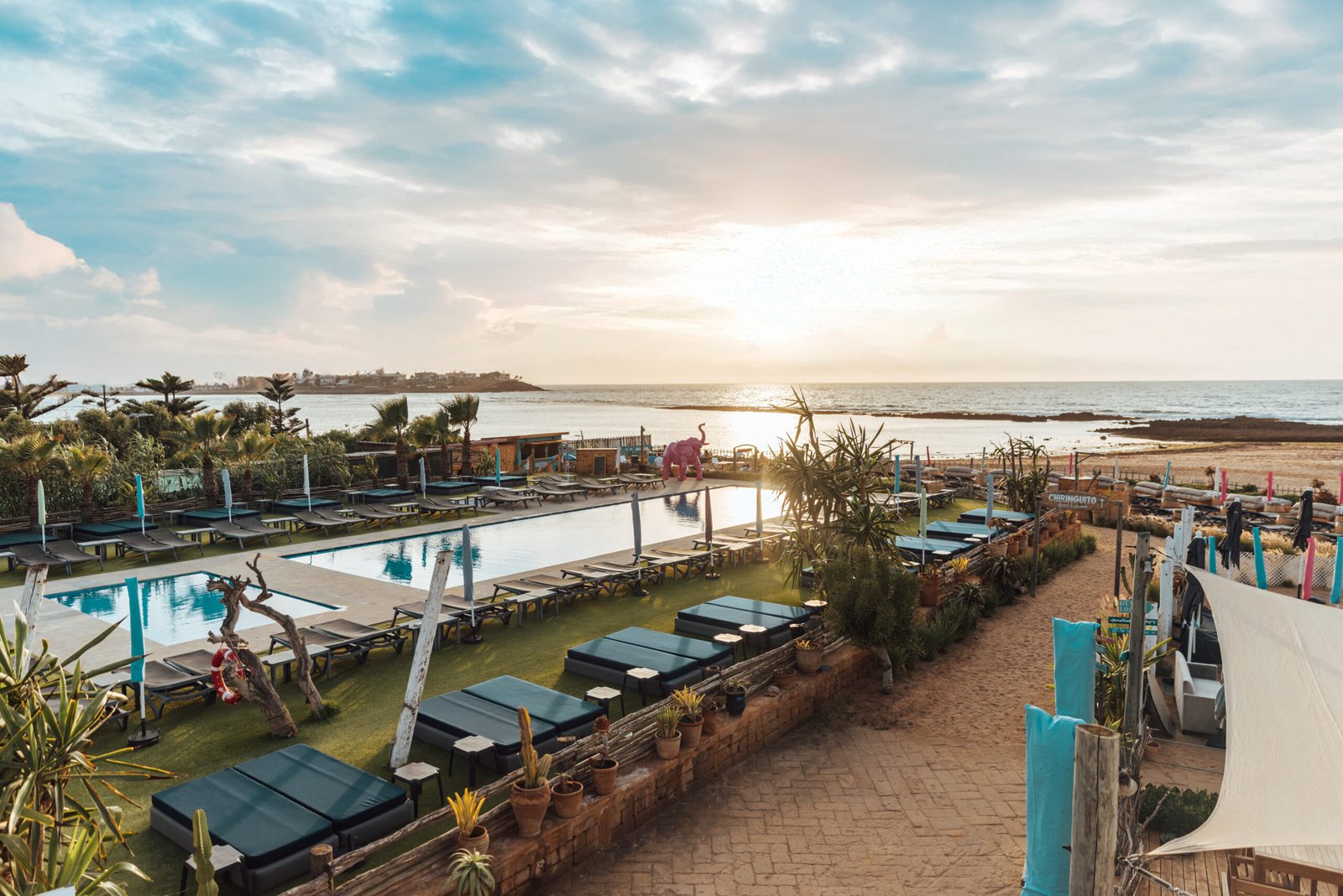 Eden Beach Club est une adresse balnéaire haut de gamme à Bouznika, où élégance et décontraction se rencontrent en bord de mer. Sa grande piscine est bordée de transats et de beds luxueux, offrant une expérience de détente absolue face à l’océan. Le restaurant propose une cuisine méditerranéenne fraîche et raffinée, tandis que le rooftop invite à prolonger l’instant dans une ambiance chic et décontractée. En contrebas, le Chiringuito, au style bohème, s’anime chaque soir au rythme de DJ sets live pour sublimer le coucher du soleil.